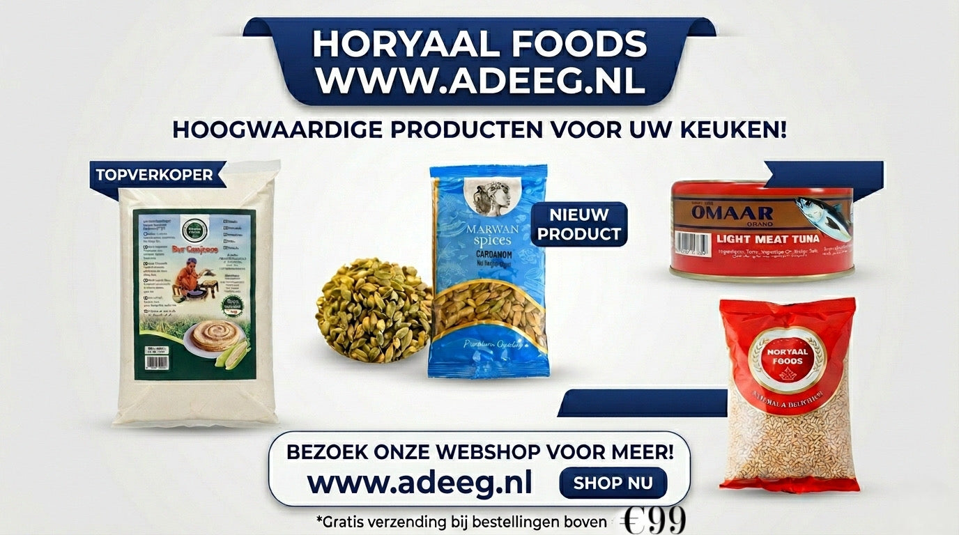 Baalabaaloow – Traditionele Somalische Knabbels Breng de authentieke smaak van Somalië naar je huiskamer met onze kleurrijke Baalabaaloow. Deze unieke, handgemaakte lekkernijen staan bekend om hun prachtige bloemvorm en hun onweerstaanbare combinatie van een luchtige crunch en een subtiele zoetheid. Of je ze nu kent uit je jeugd of voor het eerst kennismaakt met de Somalische keuken, de Baalabaaloow is een feestje voor zowel het...Regular price €18,99Regular priceUnit price / perSale price €18,99 -