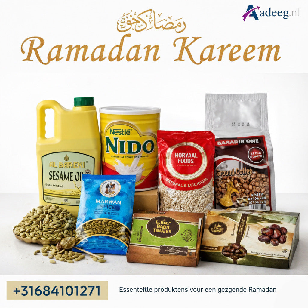 Shushumoow Somali zijn heerlijke, traditionele koekjes met een unieke geribbelde vorm en een licht krokante bite. Deze goudbruine lekkernijen hebben een subtiele zoete smaak en een zachte, kruimelige structuur van binnen, waardoor ze perfect zijn voor elk genietmoment. ✔ Authentiek Somalisch recept – Traditionele smaak en vorm ✔ Knapperig & luchtig – Fijne textuur met een lichte crunch ✔ Subtiel gezoet – Niet te...Regular price €18,99Regular priceUnit price / perSale price €18,99 -