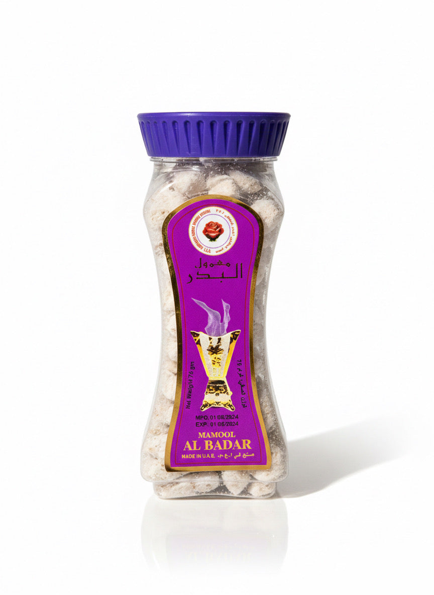 Mamool Badar is een hoogwaardige Arabische wierook met een warme, verfijnde geur. Ideaal voor het parfumeren van huis, kleding en speciale gelegenheden. Geeft een langdurige en luxe geurbeleving bij gebruik op houtskool of een elektrische wierookbrander.