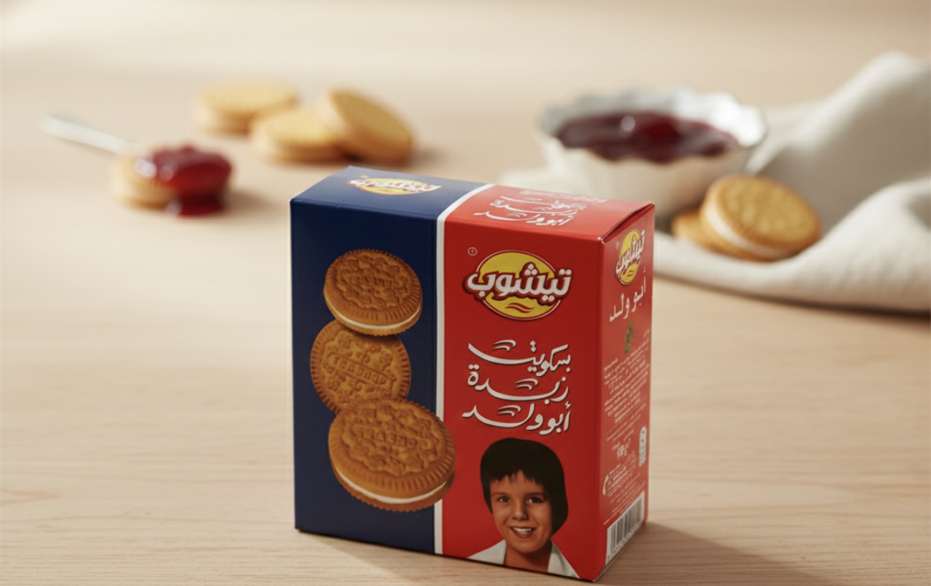 Chocolate sandwich cookies from the Middle East feature rich, mildly sweet chocolate biscuit layers embracing a smooth, sweet cream filling. Enjoyed for their delightful combination of flavors and textures.