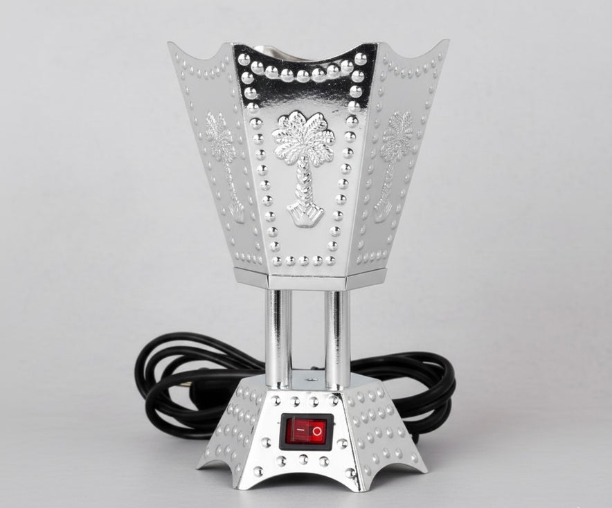 Een elektrische wierook (bukhoor) brander in een traditionele stijl. Die wierookbrander heeft een handige aan/uit knop aan de voorkant, voor uw gebruik gemak