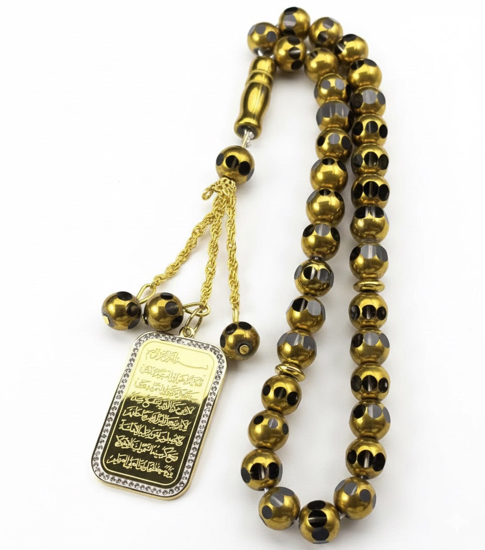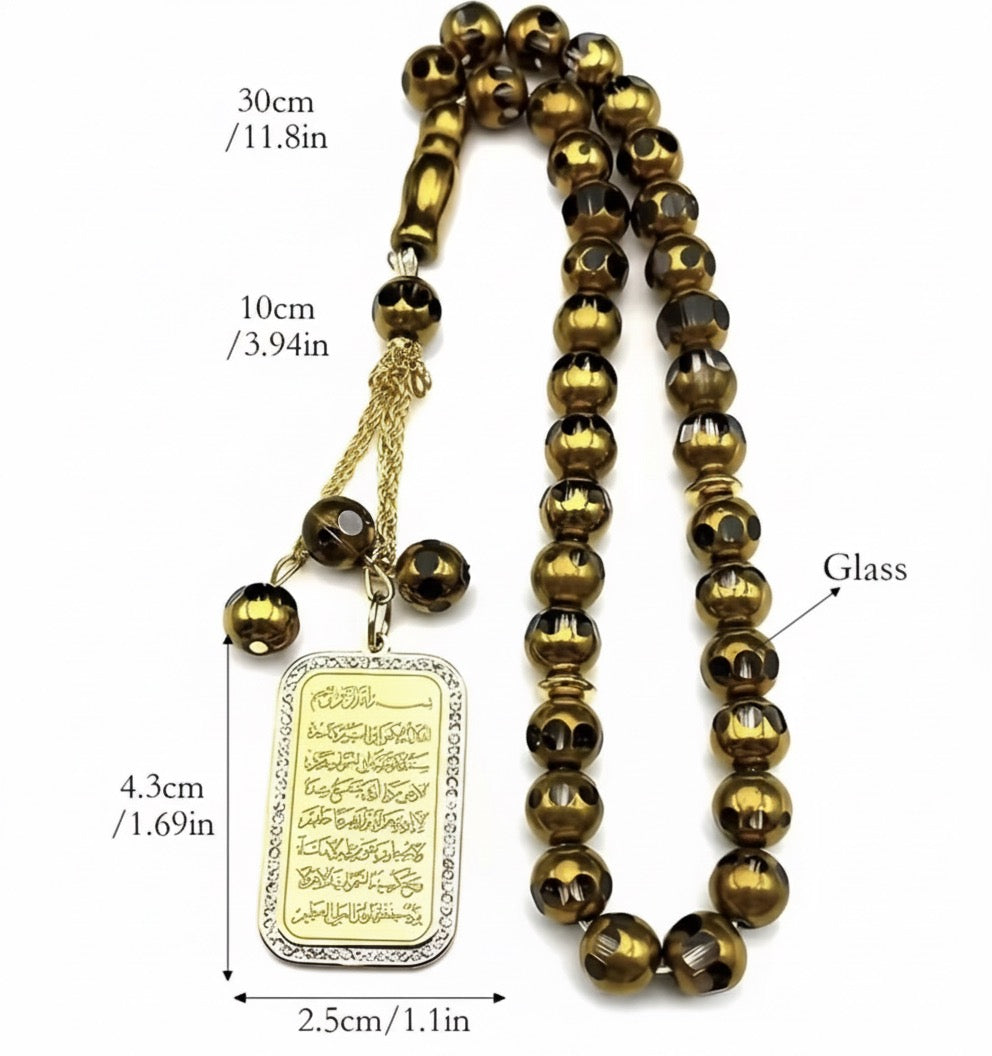 Moslim Gebedskralen Sleutelhanger met Arabische Schrift & Islamitische Gebedskralen - Roestvrij Staal Ramadan Hajj Cadeau, Autospiegel Hanger voor Mannen & Vrouwen, Islamitisch Devotioneel Accessoire (Unisex)
