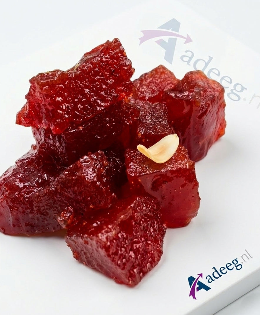 Geniet van de authentieke smaak van Somalische xalwo, een traditioneel zoet lekkernij met een rijke geschiedenis. Deze heerlijk zachte en licht kleverige zoetigheid wordt bereid met suiker, plantaardige olie of ghee en verfijnd met aromatische specerijen zoals kardemom. De glanzende, roodbruine blokjes hebben een volle, zoete smaak en een unieke textuur die smelt in de mond.